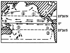 (3)甲处是寒流流经?对沿岸气候有降温,减湿的作用,对沿岸地区荒漠的形成起了一定的作用。