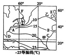 (2)与大洋西岸等温线相比,大洋等温线在甲处向________(南、北)凸出,在乙处向________(南、北)凸出。主要是甲处受________(寒或暖流)影响,乙处受________(寒或暖?流)影响。