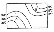 海水等温线向北方递减,故是北半球。洋流的凸出方向即是洋流的流向,由此可知A处洋流由高温流向低温,为暖流经过,B处洋流由低温向高温,为寒流经过。