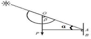 测量工具:自制支架一个、学习用量角器一个、重锤一只(系有细绳)、手表一块(已和中央人民广播电台校准时间)。安装方式:如图,A为量角器直线边投射的日影,AB⊥PA。测量日期:2010年12月22日。测量地点:校园内P点。测量结果:在手表显示12点58分时角β最小,为52°56′。