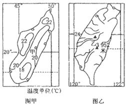2、单选题 下图中图甲是甲岛等温线分布图,图乙是乙岛水系分布图,根据图中信息完成下列问题。