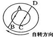 本题解析:本题考查地球自转方向。根据自转方向可判断该图是以南极为中心的地图,越接近南极点,位置越靠南;故图示A到B,C到D都是先向南后向北运动;在两地的劣弧上画出地球的自转方向,故图示A到B,C到D都与自转方向相反,故都为向西。