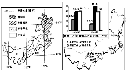 (1)内蒙古自治区的天然植被呈明显的经度地带性规律分布,试用图中信息分析其成因。