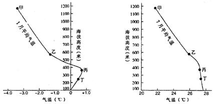 3、单选题 读我国某山1月和7月平均气温垂直分布图,完成下列问题。