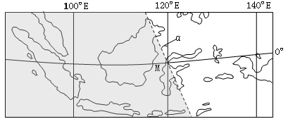 1、单选题 2010年8月14日世界第一届“青年奥运会”在新加坡举行。图为青奥会举办地附近区域某日某时日照图,阴影为夜半球。读图完成下列各题。