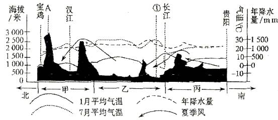 3、综合题  下图是我国某区域地形剖面和气候资料图,读图回答下列问题。(12分)