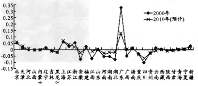 3、单选题 读我国省(市、区)际人口迁移概率比较图,从2010年预测人口数据来看,人口迁入将会明显减少的省区是