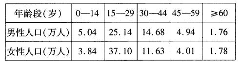 5、多选题 下表是我国第五次人口普查时“江苏省某市迁人人口年龄及性别统计表”,据此回答1~2题。