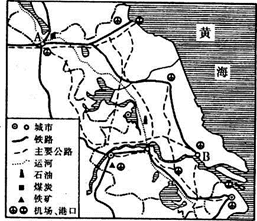 小题2:B位于长江三角洲,A位于江苏北部的徐州。徐州地区拥有煤炭,矿产资源丰富,经济发展水平低,劳动力充足。B地区经济发展快,消费市场。所以本题选择D选项。