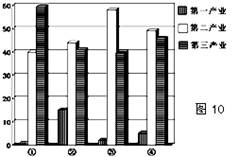 2、单选题 图10为我国四省市2009年地区生产总值产业构成图(%)”,读图完成问题。