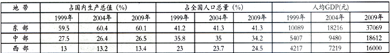 小题1:关于三个经济地带2000~2009年经济发展的论述正确的是
