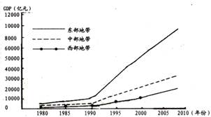 1、单选题 表中数据为三个经济地带10年间主要经济指标的发展情况,图为1980~2009年三个经济地带GDP增长。结合图和表中信息,完成下面3题。