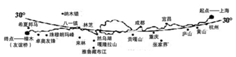 3、单选题 “中国人的景观大道”是指从上海一直延伸到西藏樟木友谊桥的318国道。这条带状景观长廊,几乎整合了中国所有类型的自然景观及人文景观。读图回答下列各题。