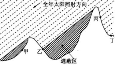 5、单选题 下图为甲乙丙丁四地二至日昼长示意图,读图回答问题。