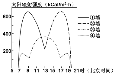 4、单选题 下图示意北半球低纬度某地某日(晴天)建筑东、南、西、北各墙面太阳辐射强度值的差异。读图完成题。