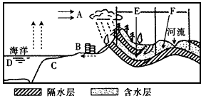 (1)图示水循环的类型是_________,E的地质构造形态主要为_______。