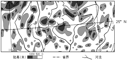 5、单选题 下图所显示的是我国某地形区。读图完成1—2题。