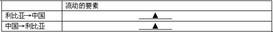 (3)中国和利比亚合作发展,产生下列要素的流动,选择合适的序号填写下表。