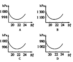 小题2:下图是“云娜”过境时气压的变化曲线。四地中更接近台风中心的是