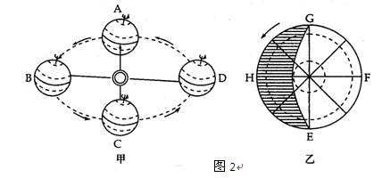 1、单选题 图2是地球公转示意图和极地投影图,读图回答6-7题: