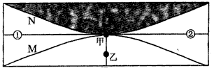 2、单选题 右图所示区域在北半球,弧线M为纬线,弧线N为晨昏线,阴影部分为黑夜;甲乙两地所在经线的经度为120°E;甲地此日正午太阳高度为40°。读图回答下列各题。