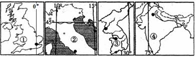 | 降水量(mm) | 8 | 5 | 10 | 50 | 78 | 91 | 98 | 51 | 49 | 40 | 25 | 14 A.①城市 B.②城市 C.③城市 D.④城市 |