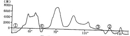 3、单选题 读“沿40°所作某大洲地形剖面示意图”,据此回答问题。