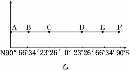 (1)图中哪些区域会出现极昼极夜现象?为什么?(4分)