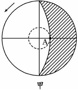 2、单选题 下面甲图中的A点是晨昏线与某一纬线圈的切点,在一年中,与晨昏线相切的纬线是变化的,因此A点也是移动的。据此完成下面两题。