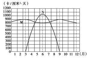 1、单选题 下图是“M、N两地太阳辐射的年变化示意图”,完成下列问题。