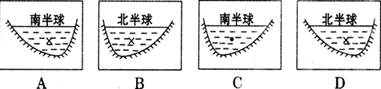 受地球自转偏向力的影响,在地表水平运动的物体,北半球向右偏,南半球向左偏,赤道上无偏向。南半球左岸侵蚀,河床较陡,D为北半球,右岸侵蚀,右岸较陡。所以本题选择D选项。
