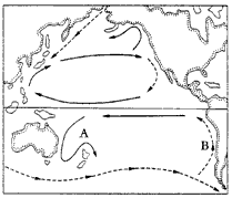 2、综合题 读洋流模式图回答: