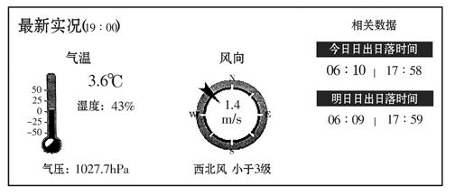 4、单选题 图1为“天气网上海某日天气预报的截图”。读图,回答题。