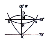 具体解答过程:图中ACB为晨昏线,晨昏线是过地心的大圆,晨昏线ACB正是过A、B两点的大圆,因此,劣弧BCA就是从B地到A地飞行最近的路线。