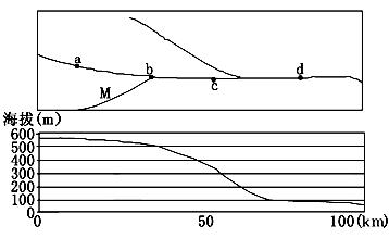 3、单选题 图为M河流域河流分布图及其干流河床对应的剖面图,读图回答题。