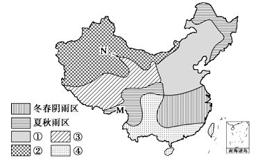 4、单选题 下图是“中国雨季类型图”,回答下题。