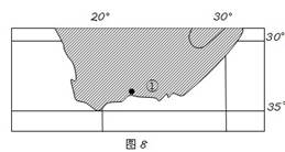 本题解析:根据图中经纬网分布及海陆轮廓可知:图中①地处非洲南端,气候类型为地中海气候,为冬雨型,对应A。