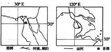C.两条河流流域都是世界古文明的发源地? D.两图中均有本国的重要海港