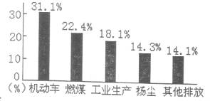 小题1:从图中分析,PM2.5的主要来源为机动车、燃煤、工业生产和扬尘,而燃气产生的PM2.5很少。故选B。