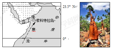 【小题3】岛上许多植物有瓶状茎(如图)、多刺、硬叶等特点,反映了该岛的气候特征是