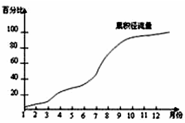 5、单选题 下图为我国某河流水文站月累积径流量示意图,读图回答下列问题。