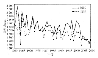 2、单选题 蒸发量指一定时段内,水分经蒸发而散布到空气中的量。一般温度越高、湿度越小、风速越大、太阳辐射越强蒸发量越大。读“北京市1960—2010年蒸发量变化”图,回答下列各题。