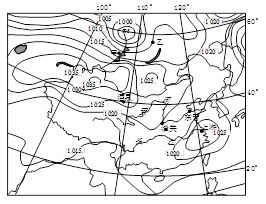 5、综合题 读12月某日14时海平面等压线(单位:百帕)图根据材料回答下列问题。(10分)