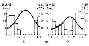 3、综合题 图1是图2中两个地区的气候资料图。回答下列问题。