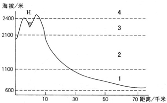 1.图中1~4对应的垂直自然带依次可能为2.图中H湖泊可能为