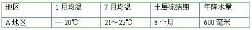 (2)形成原因:气温低,地表水蒸发弱;地势低平,排水不畅;冻土阻隔,水分难以下渗。作用:调节气候(或调节河湖水量),保护生物多样性(或保护生态系统)。