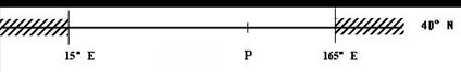 5、单选题 该图是某日某时刻40°N纬线的昼夜分布状况图(阴影区表示黑夜)。回答问题。