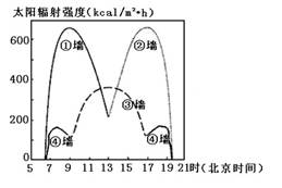 1、单选题 下图示意北半球低纬度某地某日(晴天)一建筑东、南、西、北四个朝向墙面太阳辐射强度的变化。图中代表北墙的是( )