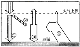 2、图示箭头中,代表近地面大气主要直接热源的是