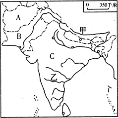(1)根据图示:A国是阿富汗,该国的主要地形类型是高原,B国是巴基斯坦,该国重要的灌溉水源是印度河,C国是印度,棉花生产主要集中在德干高原西北部,印度的软件制造中心是班加罗尔。?